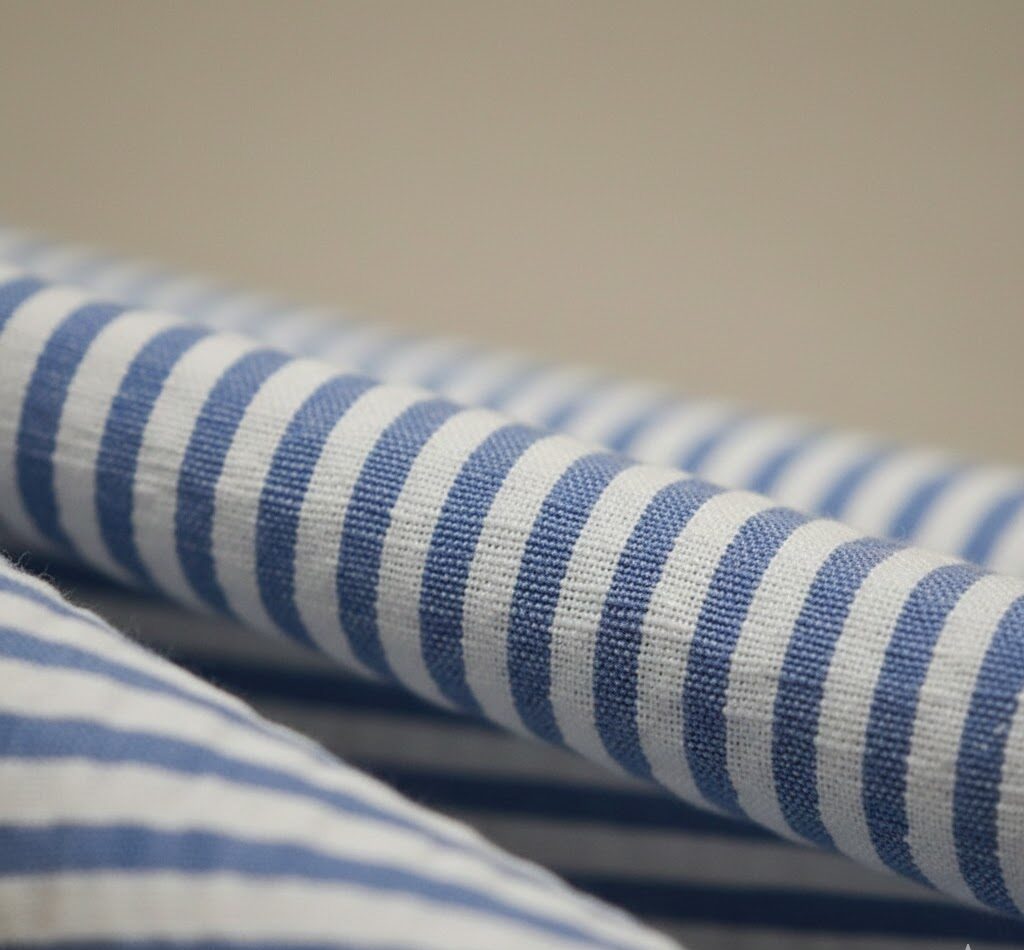 Lightweight and breathable seersucker fabric with a unique puckered texture, perfect for summer clothing, dresses, shirts, and stylish home décor Seersucker fabric is a lightweight, breathable woven textile known for its signature puckered texture and subtle striped appearance. Made from cotton or blended fibres, it allows better air circulation and requires minimal ironing due to its naturally crinkled surface. Seersucker fabric is ideal for warm-weather clothing, offering comfort, durability, and a stylish, relaxed look